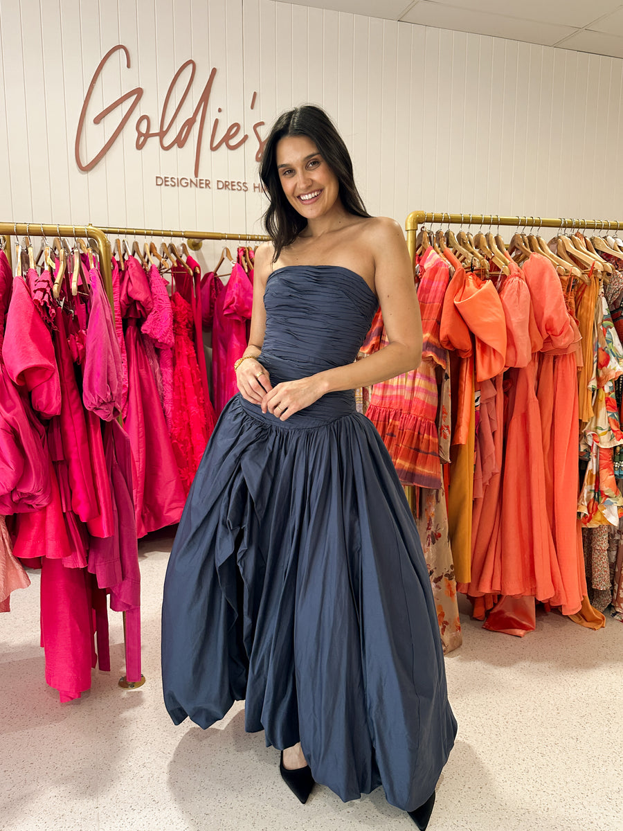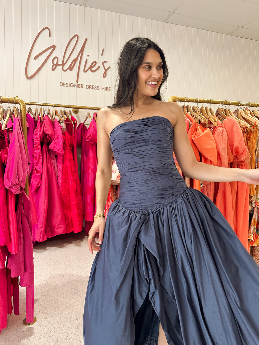 Solace London - Kira Maxi Dress Navy (Size 12-14)