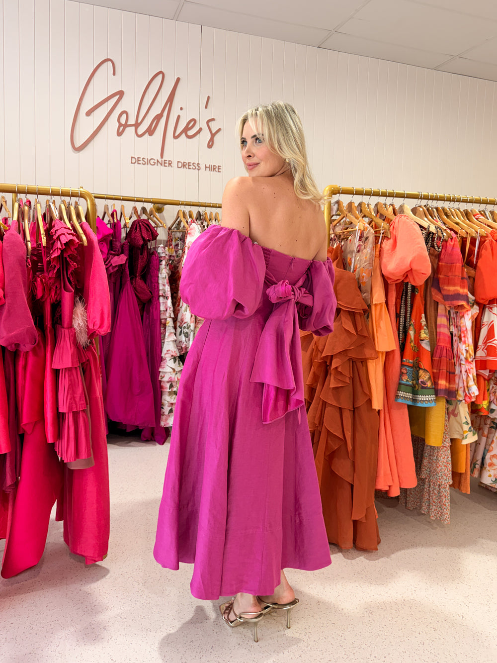 This magenta pink has got to be my favourite colour to wear to events. This dress was a dream to wear, very comfortable. I paired it with a lower heel, minimal accessories and relaxed wave in my hair, and let the dress make the statement!